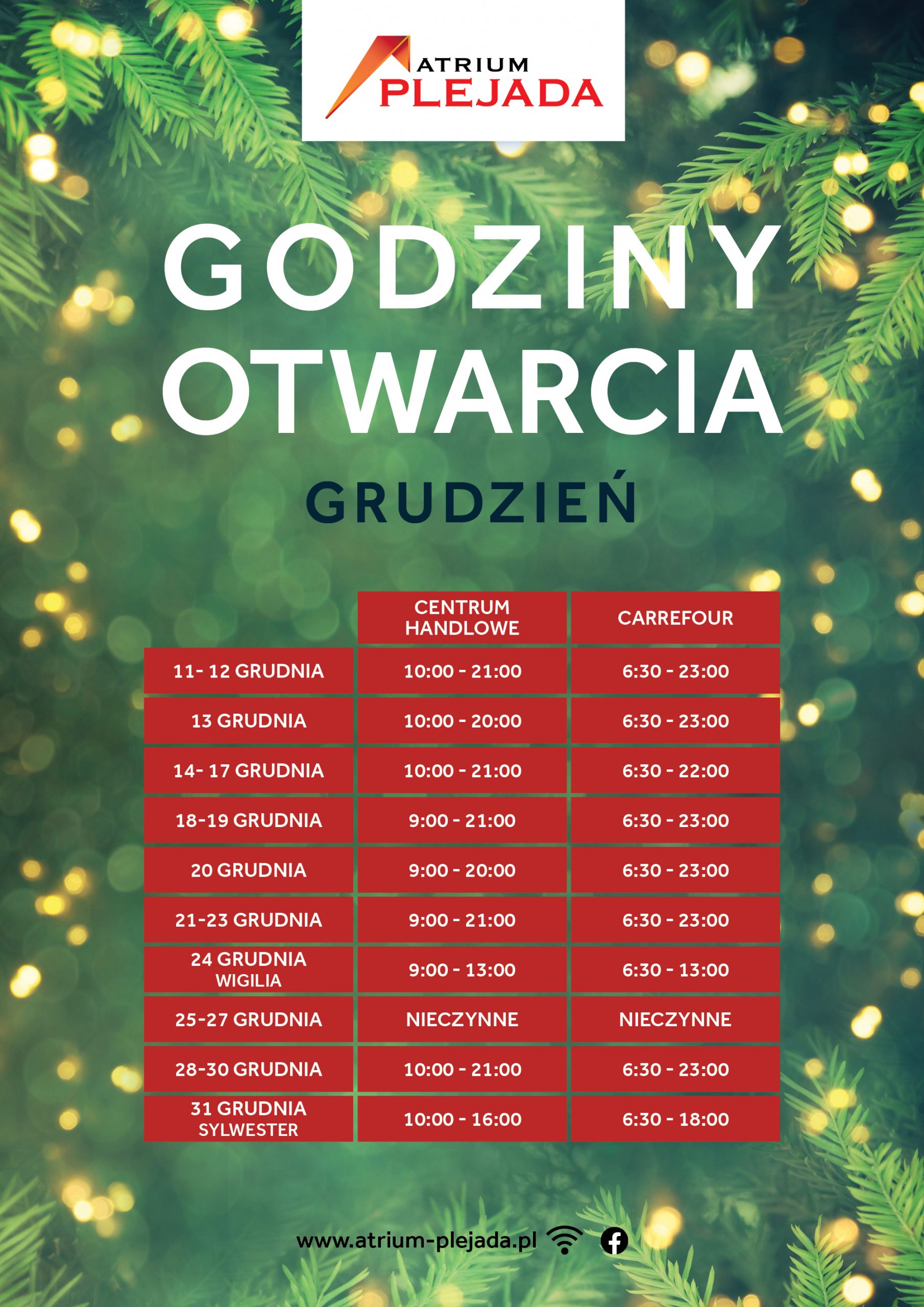 pt: 10:00 - 21:00; Najbliższa niedziela (05.04): niehandlowa