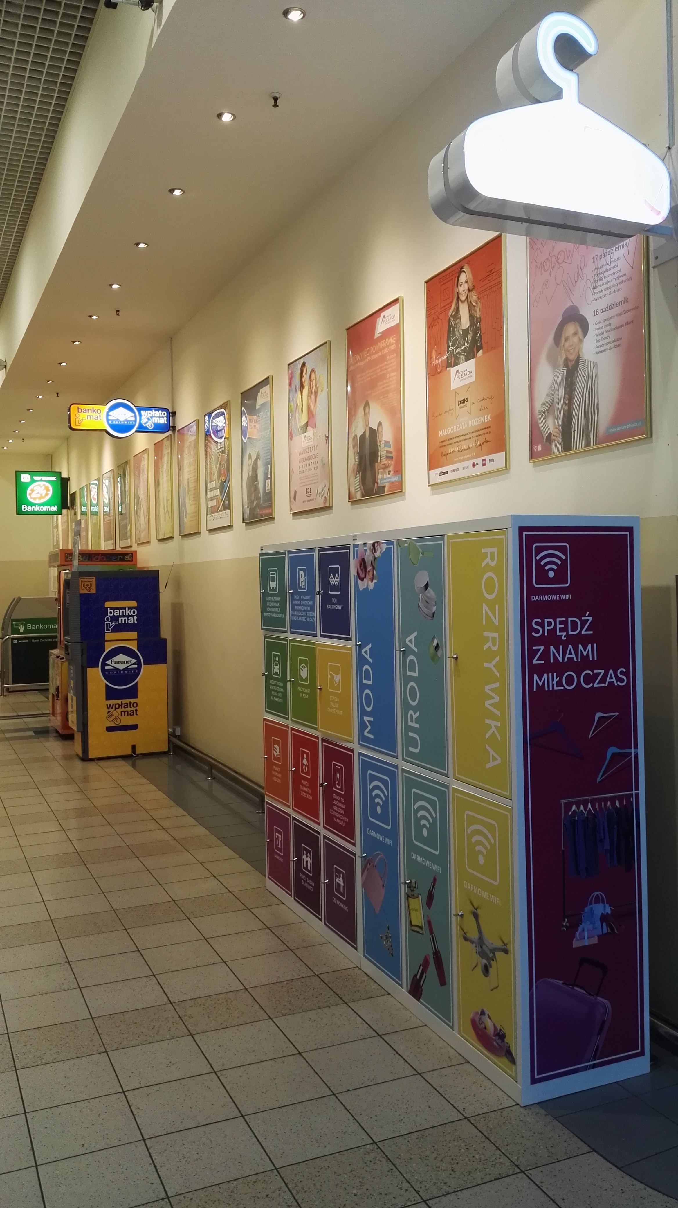 Do dyspozycji Klientów są różnej wielkości szafki, przeznaczone do przechowania okryć wierzchnich, toreb z zakupami oraz bagażu podręcznego. Szafki są samoobsługowe i zamykane przy użyciu monety o nominale 2 zł, która podlega zwrotowi podczas ponownego otwarcia szafki.