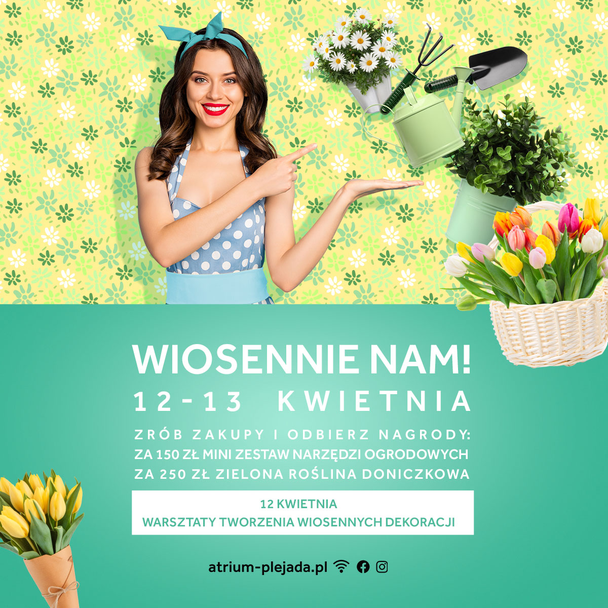 W dniach 12–13 kwietnia nasze centrum handlowe Plejada zamieni się w zieloną oazę inspiracji i świątecznej kreatywności. Klienci, którzy zdecydują się na wiosenne zakupy, będą mogli liczyć na wyjątkowe upominki, a także wziąć udział w twórczych warsztatach tworzenia wielkanocnych dekoracji. To doskonała okazja, by przygotować się do świąt i poczuć klimat nadchodzącej wiosny.